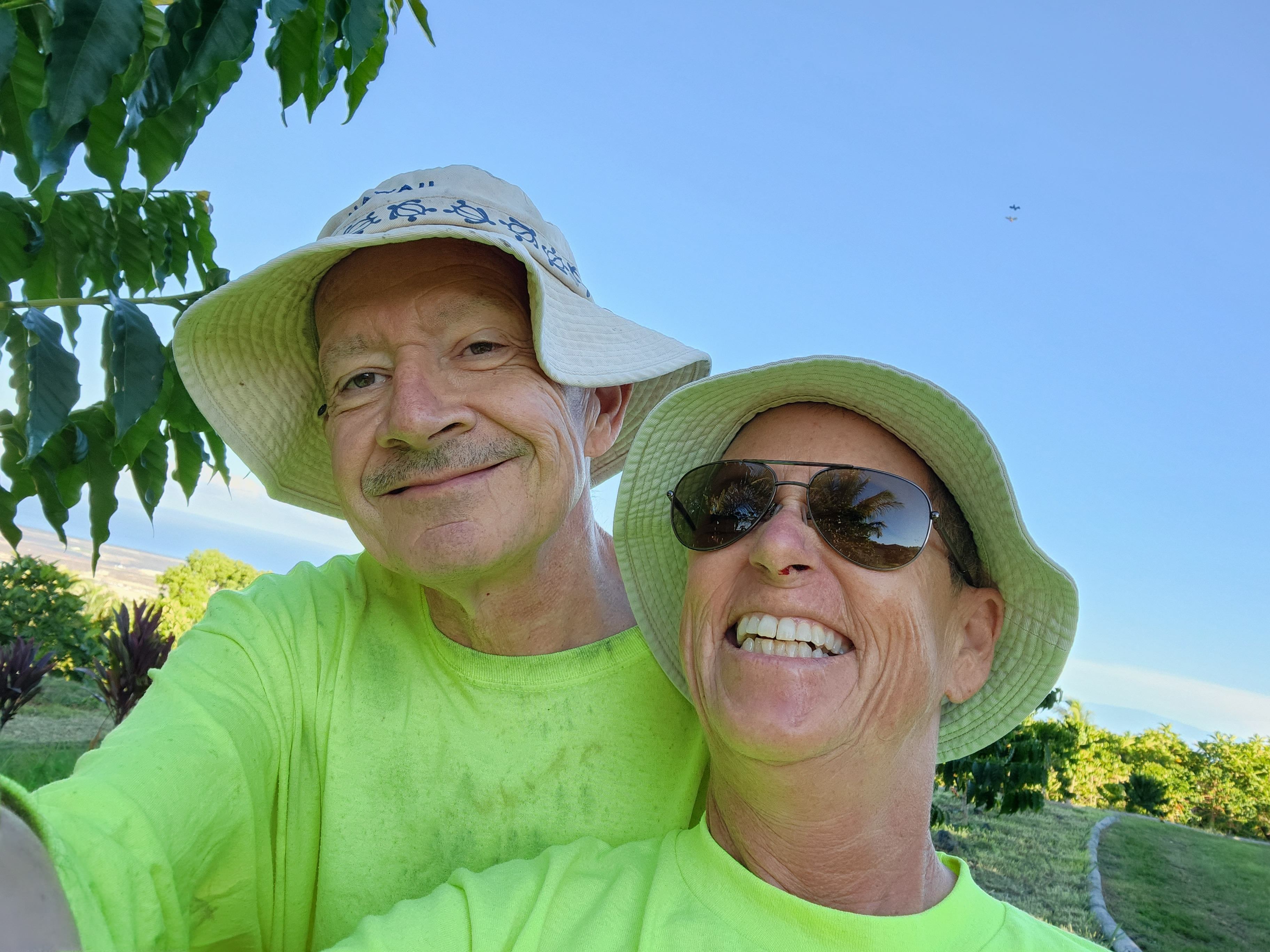 If we would have known we would never have risked that much, but isn't it that way for all our accomplishements? A long period of going back and forth while building up the land, a house and then finally in 2013 moving over to Hawaii into our New Home. Strange enough the name for our home has never changed it remained the New Home Hawaii up to todate. One thing though we knew and that was that we signed up for a lot of learning. Coming form a place on the 47th degree of lattitude going to live on the 20th degree means there is one really massively changing parameter, namely the weak expression of season, Hawaiian agriculture being technically subtropical is an all year round affair. We looked forward to it with joy and being relieved from the heavily season dominated weather back there. But this also meant no pause, no time to rest, whatever green we had, be it wanted or not so much grew with unprecendeted speed and persistence. Beatrice started her new professional life by using her newly acquired laboratory technician license in Kona Community Hospital's lab and was sent through a grueling training. She soon transitioned into running nightshifts becoming one of the two night persons manning the station year in and out. We learne that nightshift work is a team effort which dominated our life to the core. But we succeeded in meshing software development, laboratory work and building up a farm from scratch such that by 2018 most of our trees had been planted. We could feel the change insofar that we cut down more wood than we planted, the pendulum definitely had started to swing back. While living the dream we were lucky to enjoy good health well into the Covid years. Beatrice's work load increased exponentially with the laboratory already being short staffed and under pressure with ever changing requirements and procedures. We were lucky as on the farm we could easily limit contact with people. Being outside became an even better way to be free of all the distancing burden and sorrows of nghtshifts, masked shopping and weird interactions.