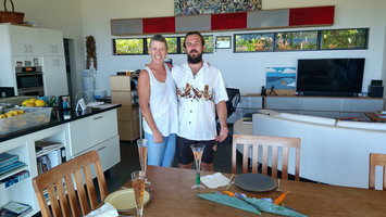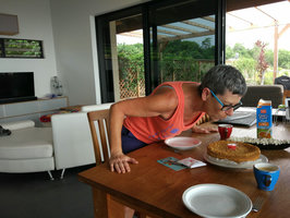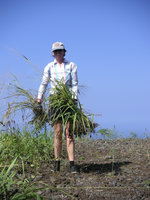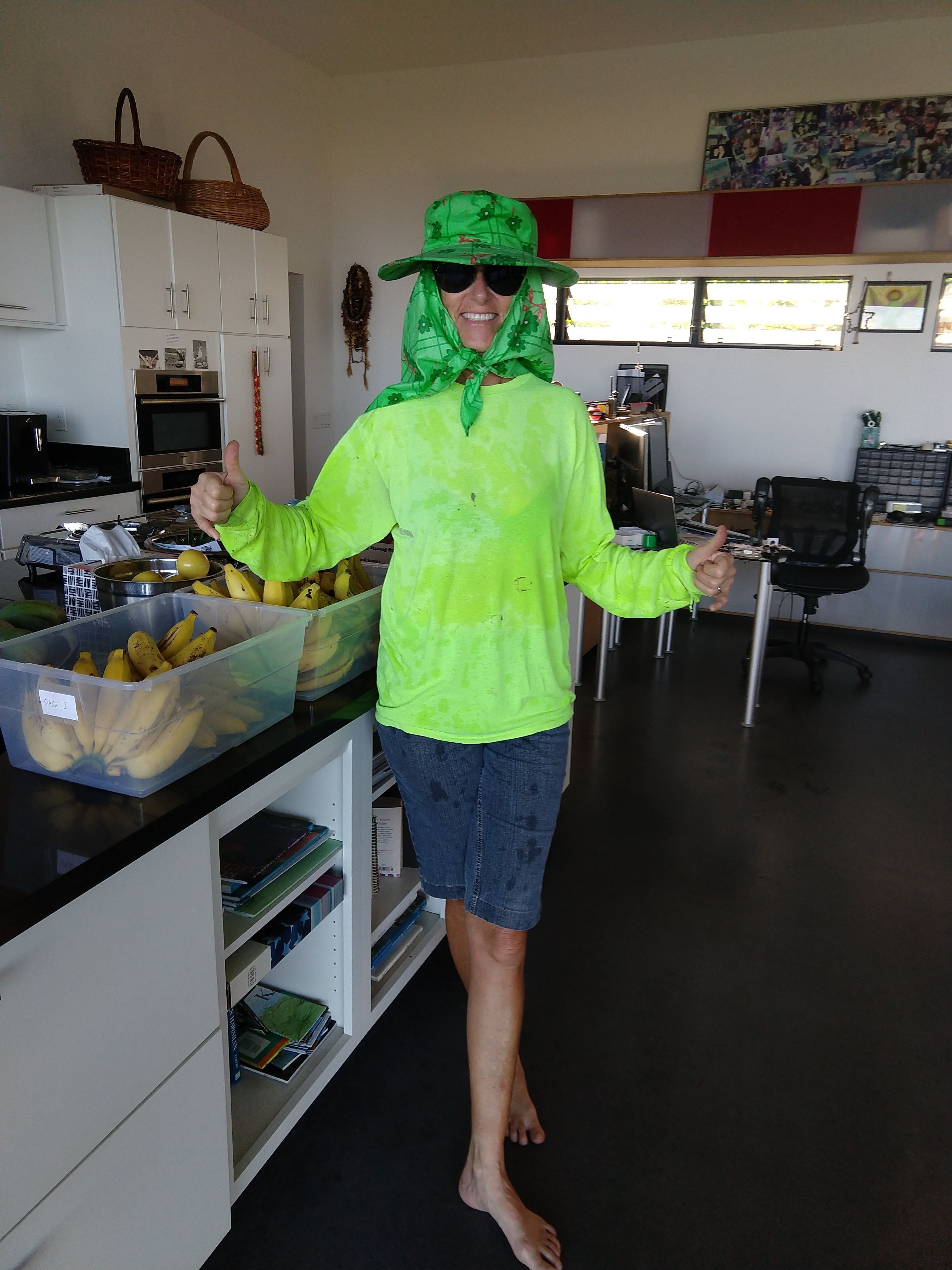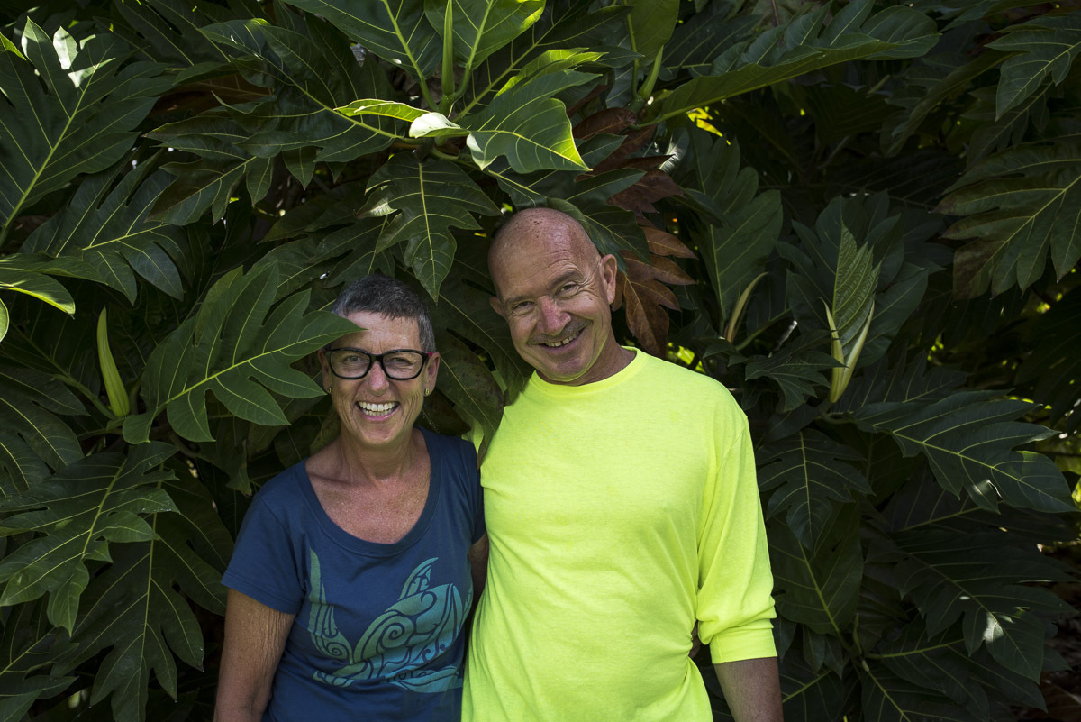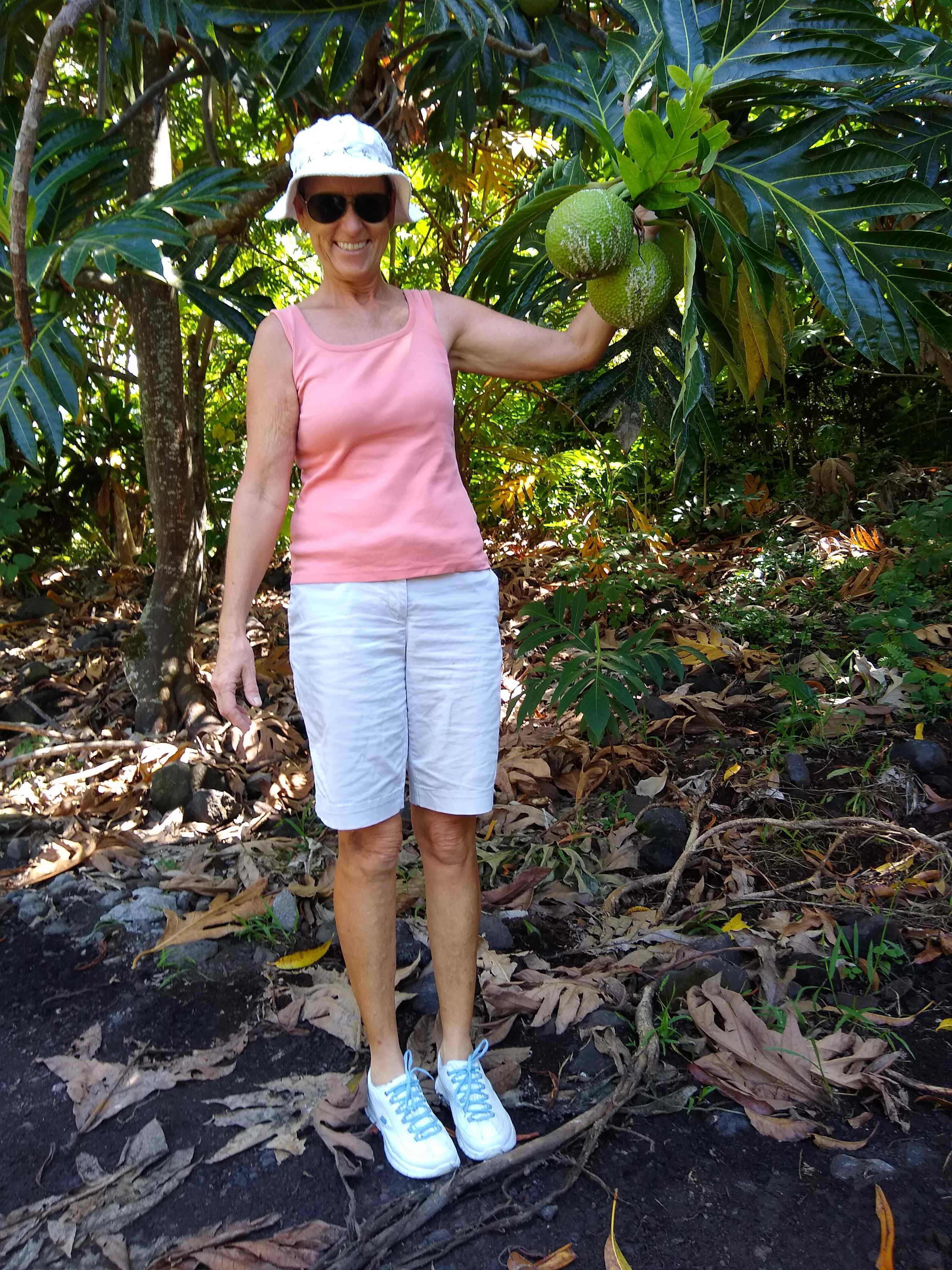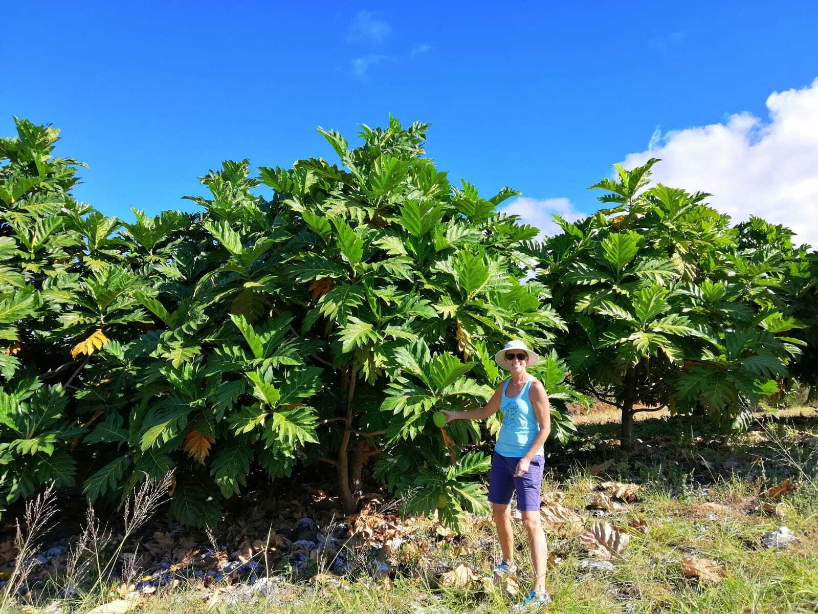 Shortly after the pouring of our slab our friend and later contractor George gifted me nine breadfruit fledling trees coming from a nursery in Maui. Our land was overgrown with eight feet high Guinea grass, a pest around here, and false Acacias or Haole Koas derisively. I cleared a strip of land along the lower street side berm and gave the trees a new home. Little did we know that breadfruit was not very common at that time. But we bought into the old saying which says that one breadfruit tree feeds a family. What then can go wrong with nine of them? Eventually and after eight years we saw the first fruit appearing and started to experiment, leaving nothing out what can be done wrong by cooking with that very special treat of mother nature. Seeing the potential even more so with the advent of the 'Ulu Coop we now have about twentythree trees producing with breadfruit these dasys being a cornerstone of our existence.When experimenting gave way to sound recipes we started the tradition to bake our bread with breadfruit and if there's a distinct point in time to remember Beatrice then it is when I bake my weekly loaf of sourdough breadfruit bread.