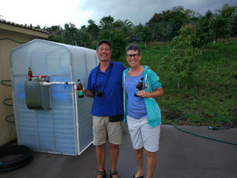 Hawaii's coffee is well known as one of the elusive specialty coffees on planet earth. Living in place on the flanks of Hualalai is practically an obligation to farm coffee. Our environment when we moved over had fifteen coffee trees in the upper north corner gifted to me a day before I flew back to Switzerland for another three month period. I planted these trees in all haste before going to the airport, even building out the automated irrigation which was sorely needed in these years of drought. They were still there when I came back, asking for more, so I planted more. Coffee became the specialty of Beatrice loving being among her trees. We never pushed the limit and stayed on the complimentary side of a crop with about two hundred trees in production. This allowed for a fine tuned set of machines and procedures to farm and process coffee which Beatrice could handle all on her own. Drinking our own handcrafted specialty coffee every morning became the ritual on days off from the lab.